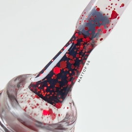 Матовое покрытие с разноцветными вкраплениями и блёстками.Теперь «Вельвет на руках» будет еще более совершенным, привлекательным и заметным. Время полимеризации в УФ-лампе 2 мин, в LED- лампе 30 сек. - 1мин. Не имеет остаточной липкости!..